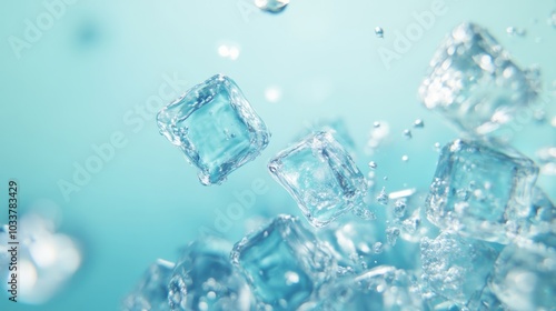 Ice cubes under water or on a light blue background