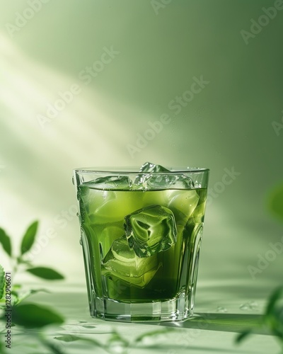Ice matcha drink is steeped in a glass in a hot atmosphere with cream on top Generate AI