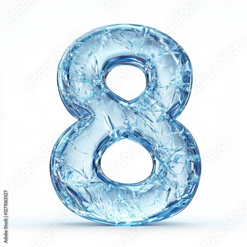 Ice number 8 with frosty crystalline details for 8 March International Womens Day isolated on white