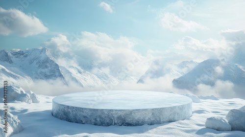 Ice Podium Mountain Landscape Scene