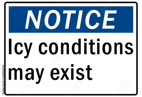 Ice warning sign and labels icy condition may exist