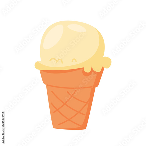 Ice-cream in waffle cup. Frozen cold sweet dessert, icecream with creamy swirl scoop. Delicious dairy treat.