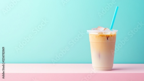 Iced coffee in a clear cup with a straw.