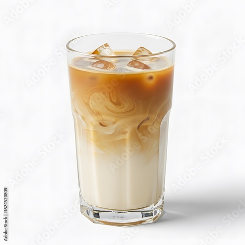 Iced Latte Swirling with Milk and Ice Cubes in a Tall Glass