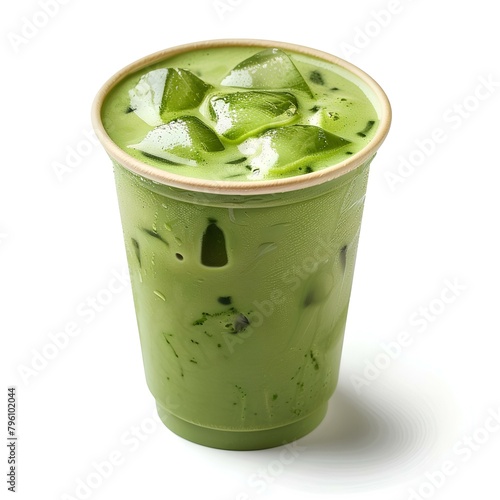 Iced Matcha Green Tea Latte in takeaway cup without logo, isolated on white background. generative AI