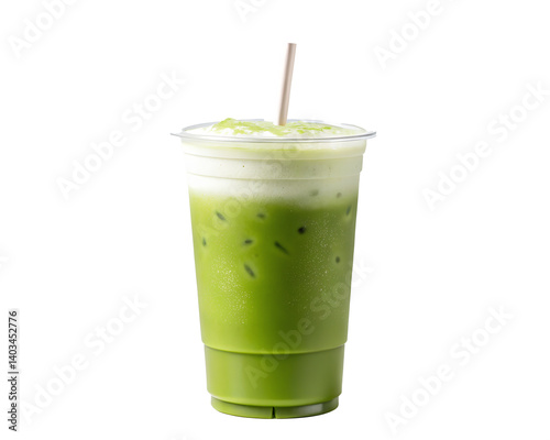 Iced Matcha Latte on White Background for Refreshing and Energizing Drink