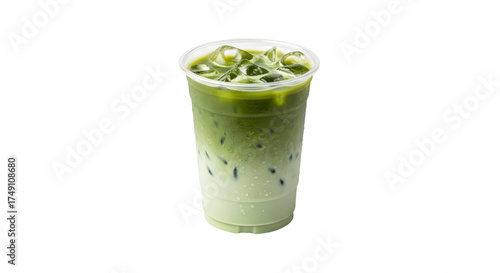 Iced Matcha Latte Refreshing Beverage Green Tea Drink Ice Cubes Cold Cup