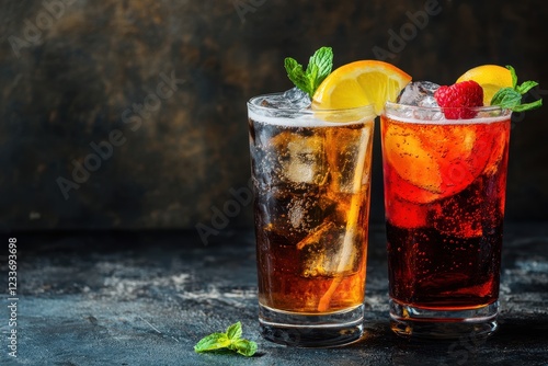 Iced tea, cocktails, dark background, refreshment, summer