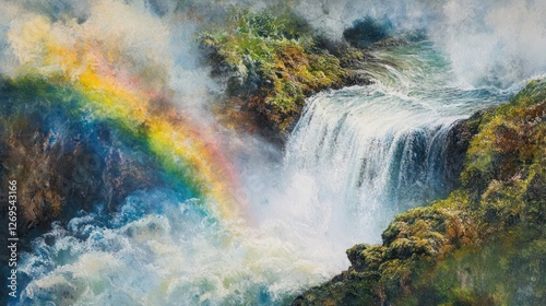 Icelandic waterfall rainbow mist scenic nature landscape travel