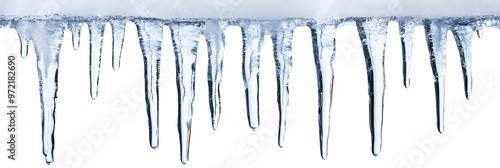 Icicles hanging isolated on white background