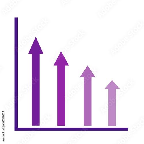 Icon graph with purple arrow showing declines isolated on white background. Bar symbol graphic. Illustration.