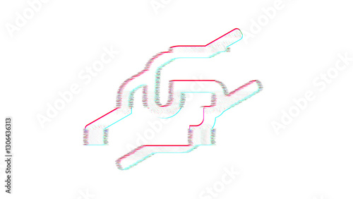 Icon hands helping is distorted. Glitch. Noise, chromatic aberration, geometric distortion