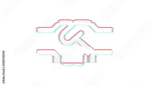 Icon handshake is distorted. Glitch. Noise, chromatic aberration, geometric distortion