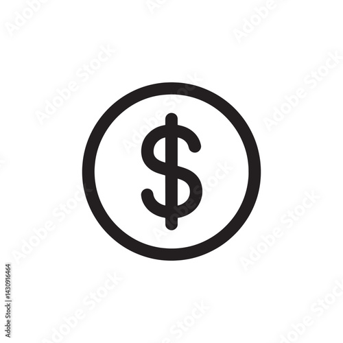Icon of a Dollar Sign Enclosed in a Circle Representing Money, Finance, and Currency for Banking, Commerce, and Financial Transactions Editable Vector Illustration Isolated on a White Background