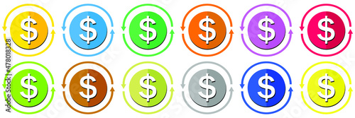 Icon of dollar sign in circle with two arrow. colored USD dollar symbol. Vector illustration