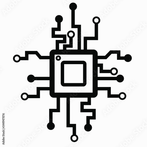 Icon processor, CNC, chip, decoder. Memory board. Video card Vector icon.