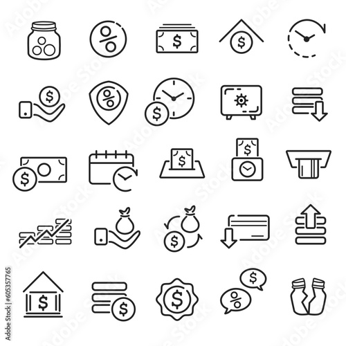 Icon set. Business and finance related to saving money. Vector illustration