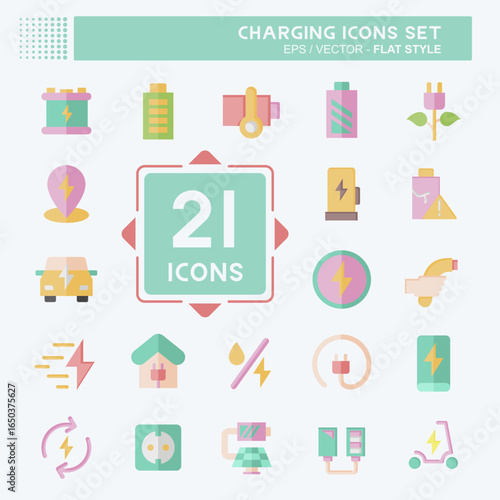 Icon Set Charging. related to Education symbol. flat style. design editable