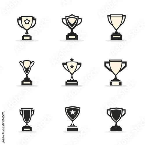 icon sheet, simple shapes, trophy icons, white background