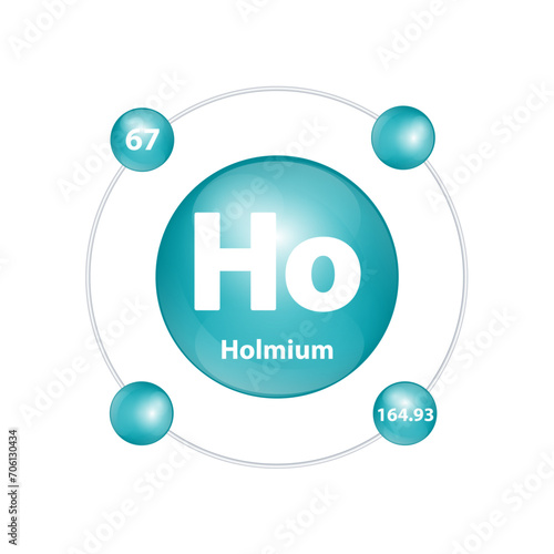 Icon structure Holmium (Ho) chemical element round shape circle dark green with surround ring Number shows of energy levels of electron. Study science for education 3D Illustration vector.