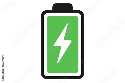 Iconic battery symbol with a lightning bolt indicating full charge on transparent