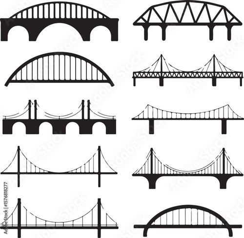 Iconic Bridge Silhouette Vector Design City Bridge Silhouette for Skyline Scenes Suspension Bridge Silhouette Illustration Urban Landscape Bridge Clipart Elegant Architectural Bridge Silhouette