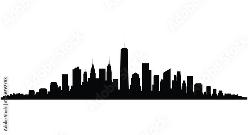 Iconic new york city skyline silhouette against a clean white background showcasing modern architecture and skyscrapers silhouette