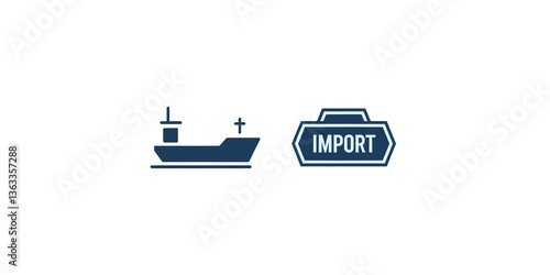 Iconic representation of maritime shipping with a cargo ship and an import label