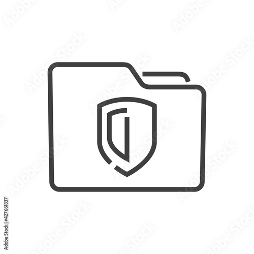 Icono seguridad. Carpeta con escudo con lineas en color gris