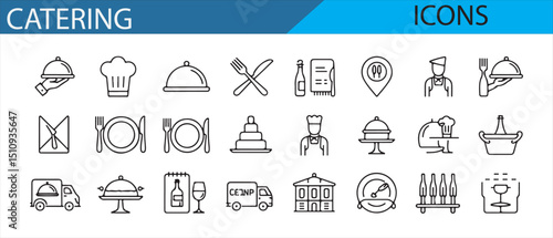 Icons for catering services, including chefs, food trucks, and restaurant tools