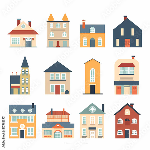 Icons of houses and buildings isolated on white. Illustration in vector format