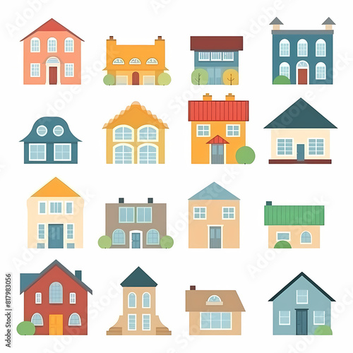 Icons of houses and buildings isolated on white. Illustration in vector format