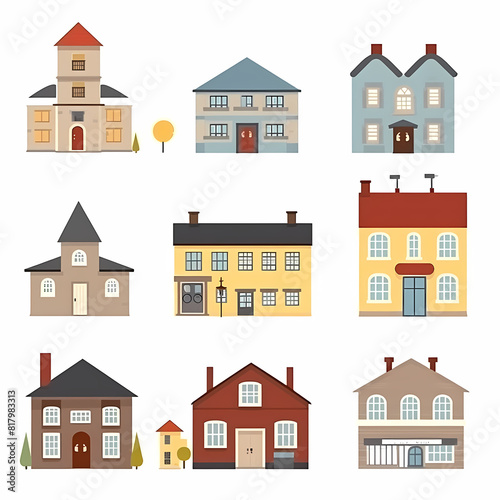 Icons of houses and buildings isolated on white. Illustration in vector format