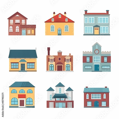 Icons of houses and buildings isolated on white. Illustration in vector format