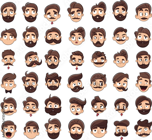 icons sheet of boy with mustache and beard wiharious expression