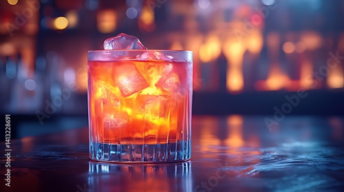 Icy cocktail, bar, night, drinks, bokeh, illuminated, glass, red, delicious, refreshment