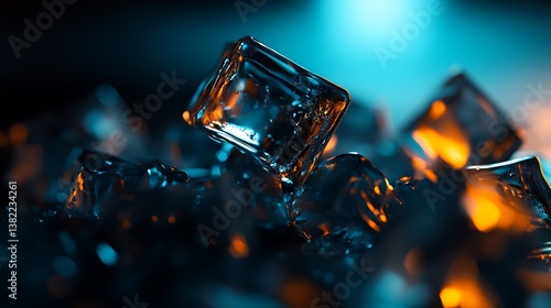 Icy Cubes Dark Blue Orange Abstract.