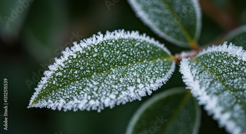 Icy Leaves Close-up with Frosty Edges in Wintertime