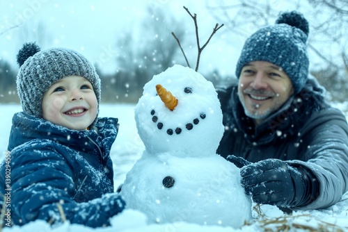 Icy sports for happy family: makes a white frost sculpture toget