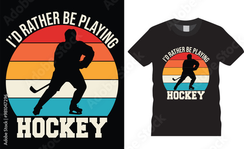 I'd rather be playing ice hockey ice Hockey retro vintage T-Shirt design vector template