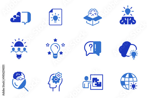Idea best solid icon set. Icons related to Idea sharing, search idea, thinking, planning idea, brainstorm, idea generation, suggestion, idea created, glowing light bulb etc. Vector illustration