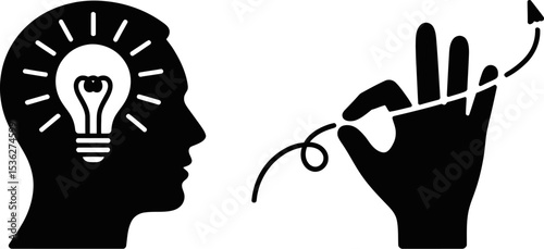 Idea generation and creative process concept with lightbulb in head and hand drawing growth path editable stock vector illustration