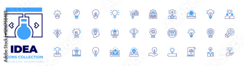 Idea icon collection. Bold line style. Duotone colors. lightbulb, creative team, idea, light bulb, ideas, creativity, energy, knowledge