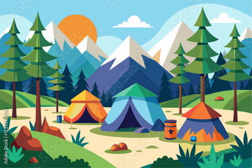 Ideal for outdoor adventure themes, hiking and camping designs, travel illustrations, children's books, tourism materials, and nature-based content