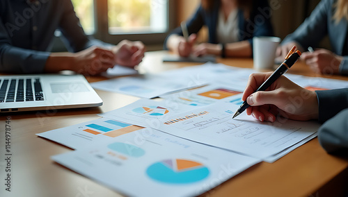 Ideas for marketing planning are generated through brainstorming sessions using a laptop and notes taken on a wooden table._00003_