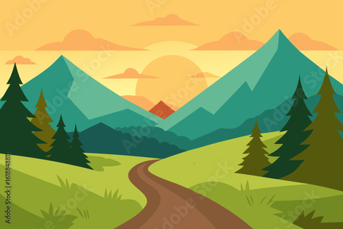Idyllic Landscape Illustration in a Blend of Vector and Raster Art