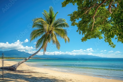Idyllic Port Douglas Beach: Sunlit Scenic Oasis with Palm Trees and Pristine Sands in Queensland, Australia