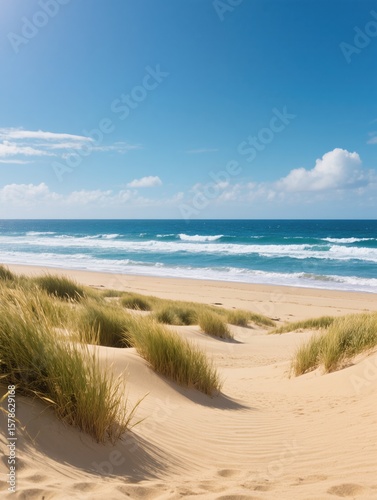 Idyllic Sandy Beach with Rolling Waves and Serene Coastal Scenery