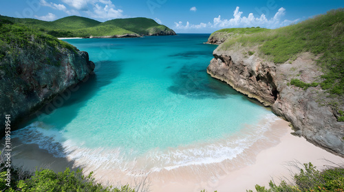 Idyllic Tropical Island: Aerial View of a Pristine Paradise with Turquoise Waters and White Sandy Shores