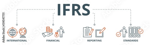Ifrs banner web icon vector illustration concept for international financial reporting standards with icon of global, network, money, documents, books, and writing